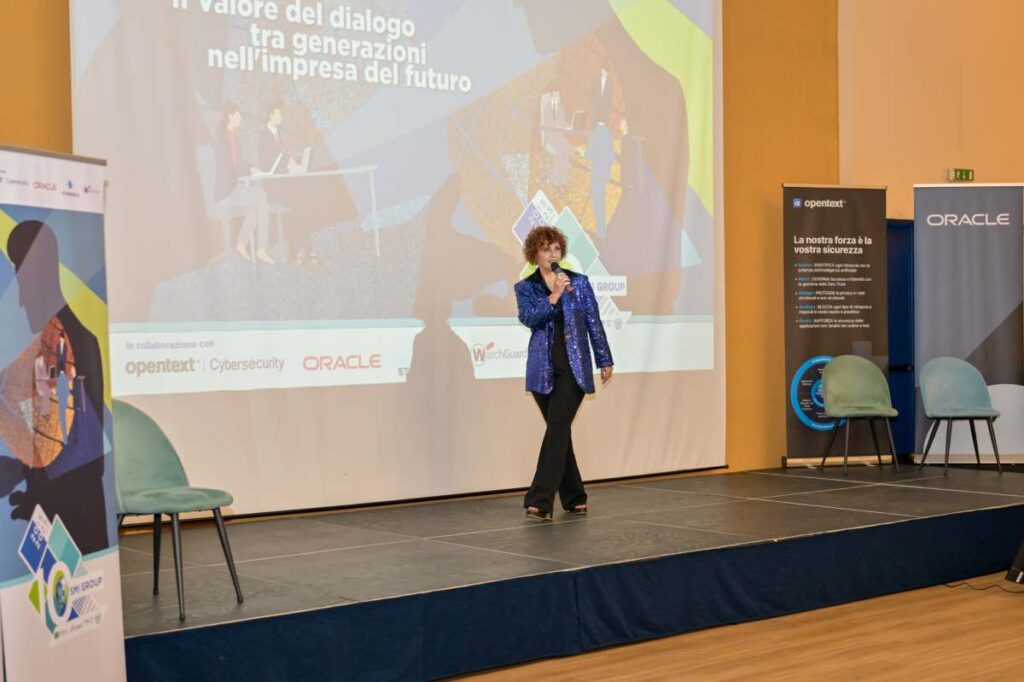 Sul ruolo della tecnologia nel favorire il dialogo tra generazioni all’interno delle aziende, Marco Lorusso, giornalista specializzato in ambito IT, si è confrontato con i partner tecnologici di SMI Group presenti all’evento. A intervenire sul tema sono stati Gianluca Liparoti, AI Sales Lead for Italy di Oracle, Alessandro Frillocchi, Senior Account Manager di OpenText, Andrea Scattina, Country Manager Italy di Stormshield, e Gioacchino D’Amore, Channel Account Manager di WatchGuard.
