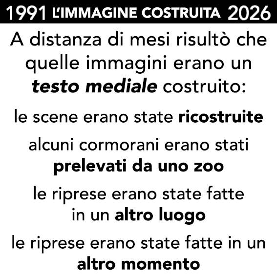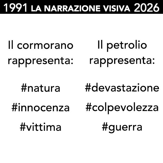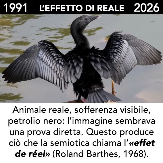 Il post dedicato al caso del cormorano della Guerra del Golfo mostra in particolare come una singola immagine possa trasformarsi in un potente dispositivo narrativo capace di influenzare la percezione pubblica di un evento storico.
